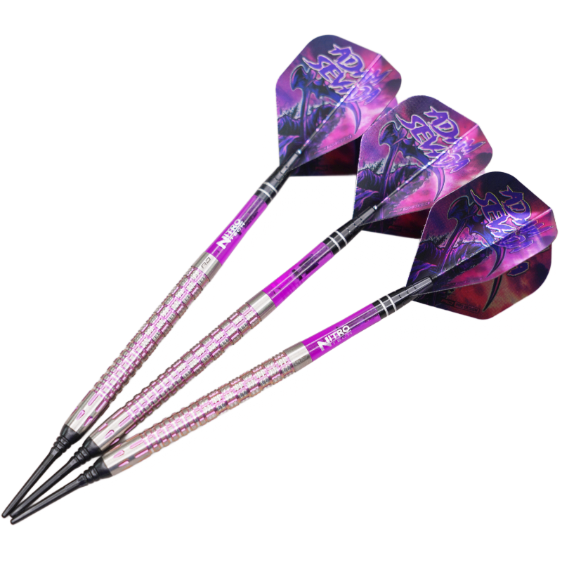 Description: Inspired by the royal purple of ancient history, a symbol of power and prestige. This dart seamlessly blends that rich heritage with modern precision, offering the perfect balance of strength and elegance. Reflecting the intricate design demands for elite player feel and controlled throw. These unique and stunning darts feature milled grip end-to-end, complete in modern PVD coating - styled to match The Reaper's signature style.