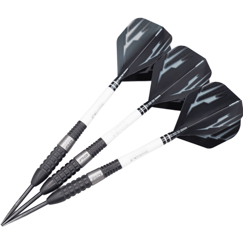 Description: Torpedo. Power. With futuristic design lines and packed with the latest game changing technology Carnage promises to be the dart of the year - the Torpedo designed power houses will help propel your game to the next level through sheer excitement in playing. Designed with a strong locked feel in hand that is built to last and delivers a beautifully controlled flight to the dartboard; Carnage looks spectacular and is guaranteed to turn heads. Made from our Aero Grade 90% high density tungsten for ultimate feel and performance. Carnage TX80 grooves offer level 4 grip the full length of the barrel and coupled with a classic torpedo profile to deliver class leading trajectory control. The precision milled titanium coating extends the length of the dart and is underpinned with a shot blast axial for the ultimate contrast look and control. Complete with sleek black points, Carnage are a work of beauty for the dart player that plays to the highest levels.